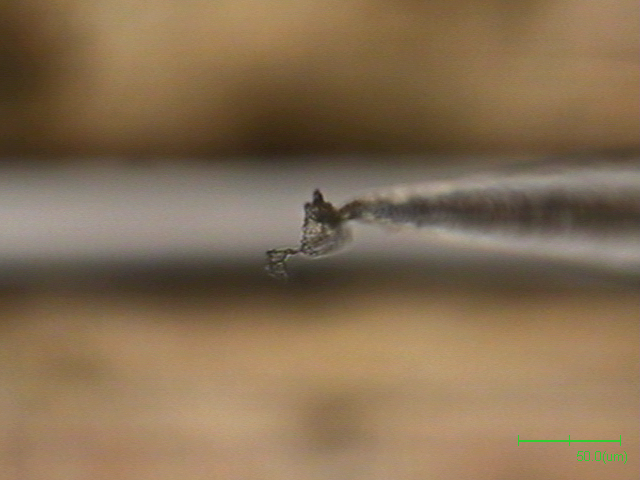 Tungsten needle | 0.2µm diameter up to 30µm diameter | Tungsten | Poking, scrubbing, scraping, peeling, cutting, picking up, carrying | ![]() |